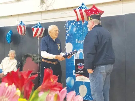 During the Feb. 5 celebration, Rybinski was also presented with a birthday card and balloons from Honor Flight, a patriotic quilt made by the Thread Bears Quilters’ Guild, a flag that flew over the United States Capitol, and a certificate from Rep. Brandon Williams’ office.